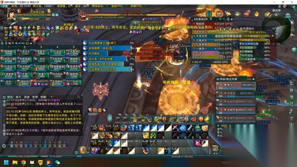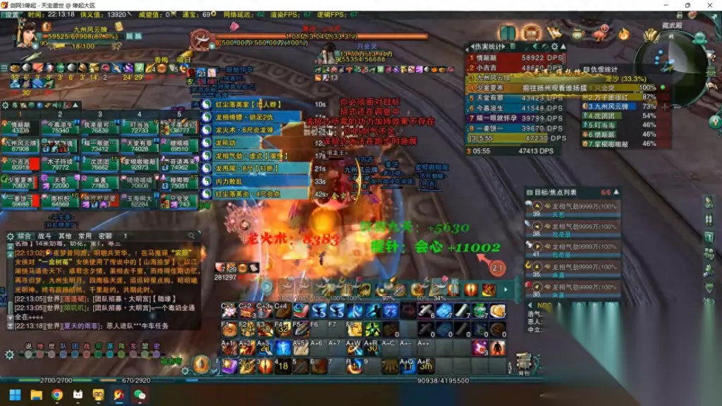 这里也可以看到,我每次打合规之前会往外走位,一边走位一边去读西照,等西照读完了以后,正好我的位置大概十指左右,西照也能伤害打出来,合规正好也能砸出来。云飞和西照在这里是有一个隐藏的设定,很多人可能不知道,它可以在四尺,八尺以内都可以读条,四尺以内有额外伤害八尺可以打出伤害。如果八尺以内可以读条,如果读条结束的时候我们距离boss十尺,伤害依然是可以打出来的,这点就可以利用好。 目前来看场上的情势比较危急,向上确实比较考验队友的智商和熟练度,有一两个菜整体体验就会很差。这里可以看到,boss的危机四伏,中间有火球,四边有火阵,你猜哪个都不行。 这里除了想出去打合规的时候要求是非常高的,要特别特别的小心,所以这里一定要注意否则很容易上天,还有他不能踢,尽量还是给上。因为身法比较弱势目前可能就一个身法,所以如果不打它没可能不太踢的出汗可能会有很大压力。这里是大家需要注意的地方,目前来说局面整体缓过来了,其实我这把也是比较可惜,之前大概打到百分之五十的时候,因为那个时候大家处理也比较好,一点二四万可以可以看到当时是打了五万的dps,这个我是非常满满意了,但是之后因为来回的频繁移动加上我要拍技能,所以说地盘也是掉到了四万五,现在比较可惜,这边看到脚下有火赶紧就走开,然后出笼往外跳,快到的时候一个合规正好能砸到所有的。这里可以看到有龙火术,再加上boss面相提升好,再带 boss,这个时候就注意特别容易减变,因为龙火术本身就会掉好几千,一下八千掉几次,血量已低于四万转变向的时候,boss一个穿透伤害直接就带走。