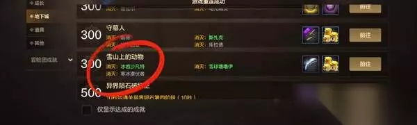【攻略介绍】 成就:雪山上的动物 击杀:冰齿沙凡特、雪球噜噜伊、寒冰潜伏者 流程: 1、首先我们需要前往地图的位置——万年雪山。 2、然后我们在地图中分别选择普通级-斯卡萨之巢3图。 3、最后我们在地图中选择刷全图后即可获取成就-雪山上的动物。