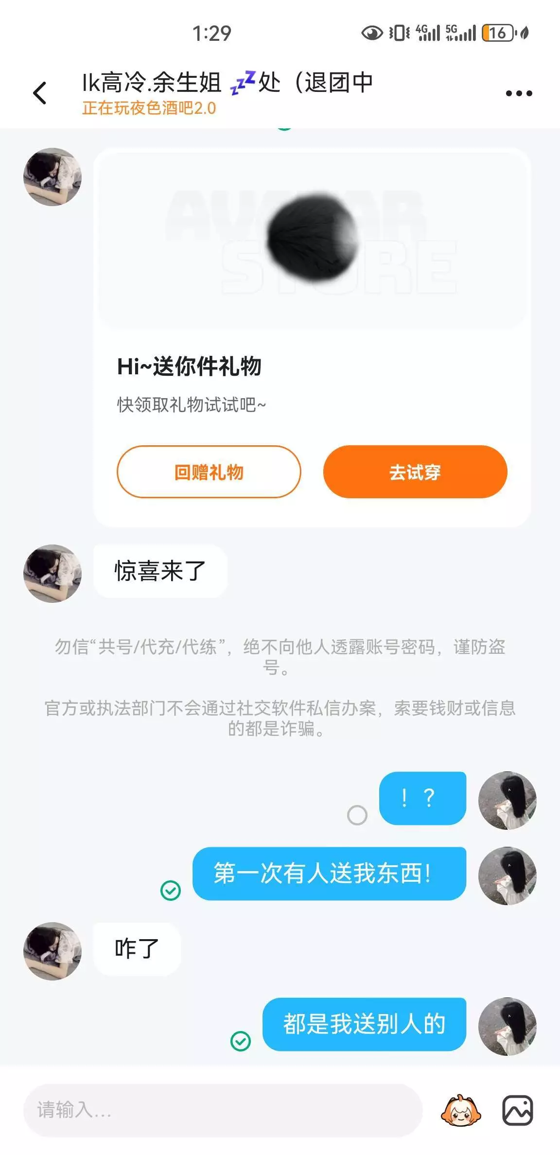 有很多人都向我要礼物,除了我的闺蜜,那些是我自愿赠送的,那些向我要礼物的人,我基本上给了,有的没给,没给是因为我没币了,都送完了,这是第一次有人送我东西,真的好感动!!!!!!!!!!!