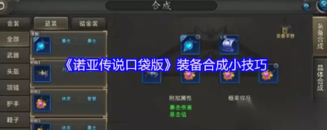 五、避坑指南 勿赌随机合成:盲目放入词条杂乱的材料=浪费资源! 锁定目标词条:提前规划需要的属性(如输出职堆攻击/暴击,坦克堆血量/防御)。 材料预处理:通过低阶合成或副本掉落,提前洗练出所需词条装备备用。 活用22法养料:用22法产出带目标词条的"半成品",作为高级合成的材料储备。 掌握这些合成精髓,你将彻底摆脱"合成毁一生"的魔咒!无论是用22法快速武装小号,还是以55法锻造传世神兵,精准的策略永远比盲目堆料更接近成功。在《诺亚传说》的装备进化之路上,愿每一次合成都成为你登顶巅峰的坚实基石!