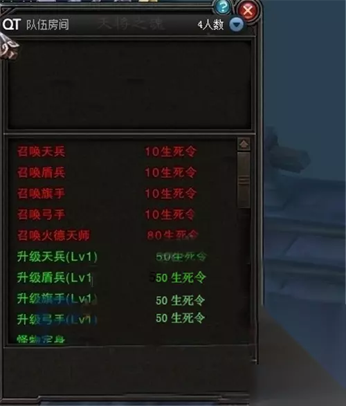 流程介绍: 进入地图以后,你会碰到唐太宗,点击唐太宗让他跟你走,一路没难度,清小怪即可。继续往前走,走到桥的中级,会有一个NPC叫天将之魂。这个时候,奈何桥副本才刚刚开始。 天将之魂可以召唤出:天兵、盾兵、弓手和旗手。这些召唤出来的帮手是可以升级的,最多只能召唤5个。我建议这些帮手的选择是2哥旗手和3和盾兵。 当你打到一定的第6波的时候会刷出第一波宝箱,这个开出来的是绑银。宝箱的数量是随着波数的增加而增加的。一般通关了的话会有10W绑银,加2个还是3个高级福源袋,还有几个真言残片箱子。打这些关卡的时候记得升级你的NPC。选择最下面的2个BUFF,第一个BUFF,50生死令(攻击防御增加100%)持续60秒。第2个Buff,100生死令(攻击防御增加300%)持续60秒。