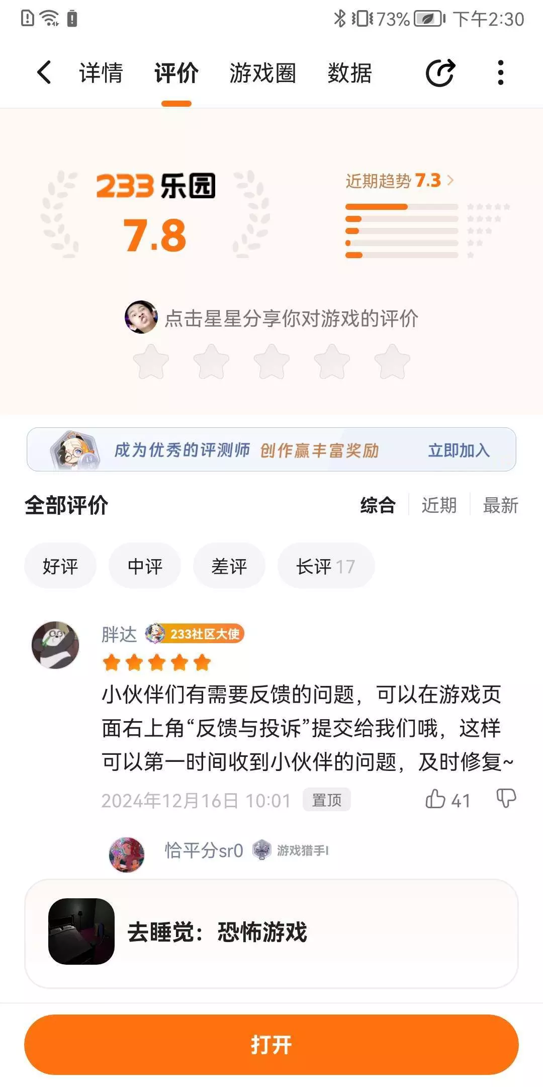 一看这评分就知道这游戏不简单
