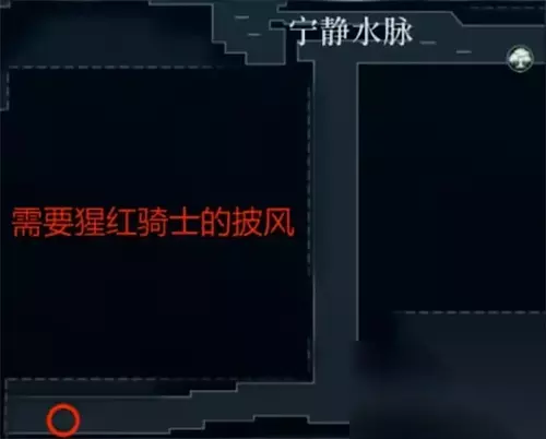 3、第三个在静水脉。在巨人陨落中击败死神之镰和猩红幽灵获得猩红骑士斗篷后,穿过红色屏障,在图中所示位置直接拾取。