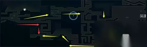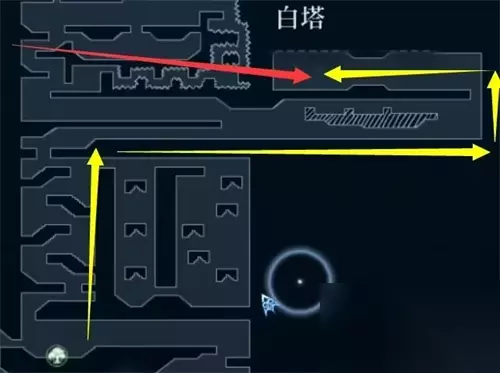 8.还需要前往王城获取“塔洛斯原始核心”。 9.再次回到水界,与水巨人萨对话,获得诺面。 16. 技能-天启光环 到达170点心渊后,前往往昔之森与深海海岸的交界处,也就是图中所示的位置,与巨龟对话(红色为捷径,黄色为第一条目击路线) ),到巨龟背后与光芒互动,获得末世光环。