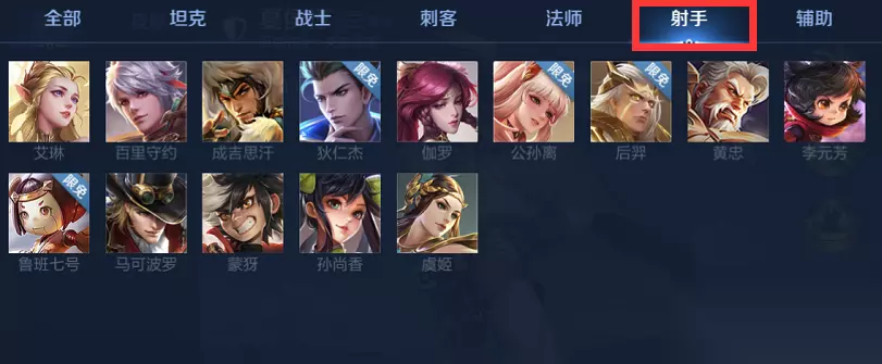 五、射手类英雄: 艾琳、狄仁杰、伽罗、公孙离、后羿、黄忠、李元芳、鲁班七号、马可波罗、孙尚香、虞姬、成吉思汗、百里守约、蒙犽