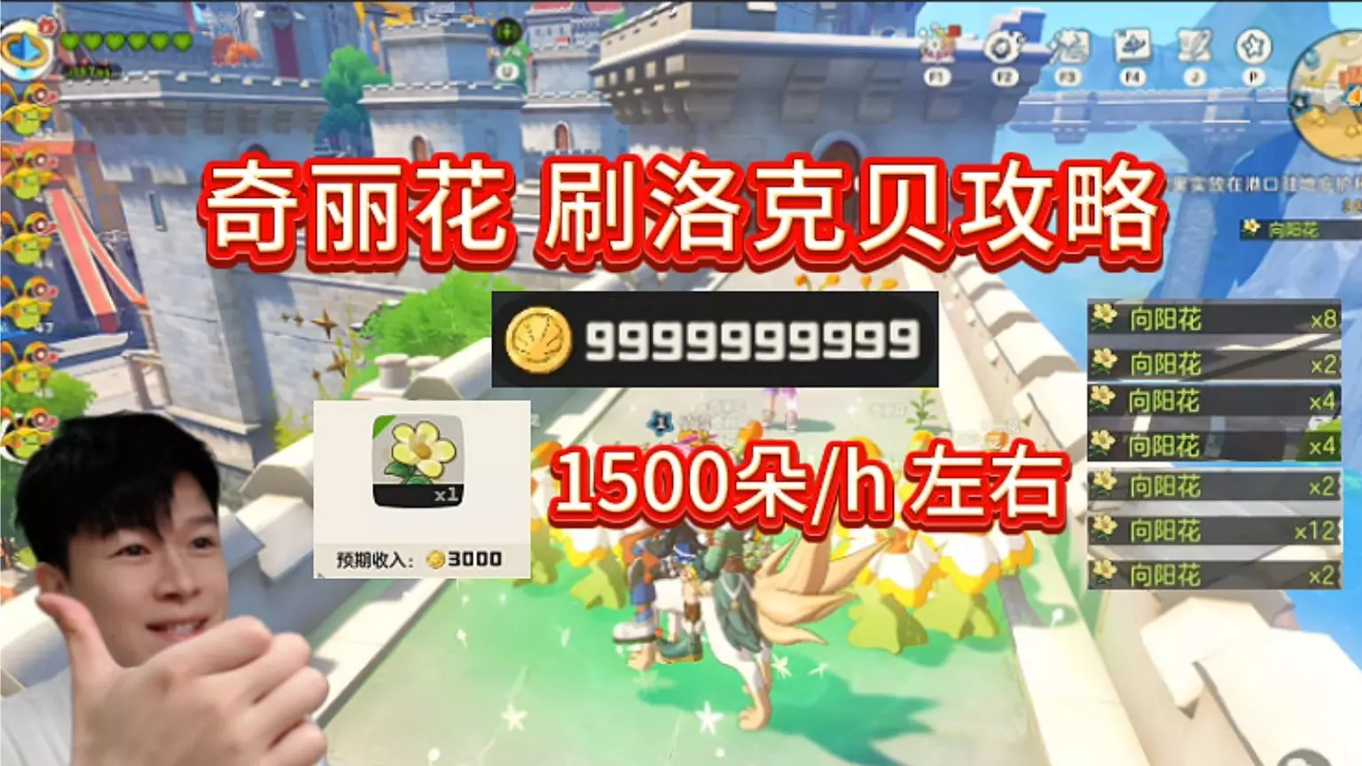 一小时正常是获取大概600个左右的向阳花 有带爱分享的情况下是1500-2300之间 组队一起刷会更有优势