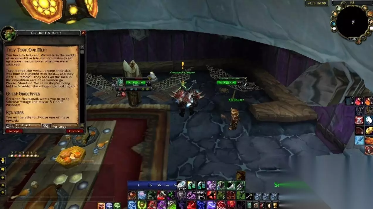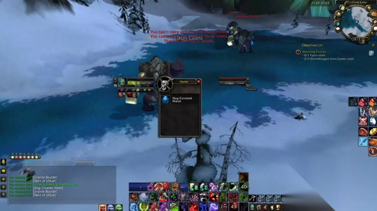 现在关键点来了,“弥补关系”的任务要求是要玩家前往“丹尼芬雷”右边的山洞消灭弗约恩和5个雷铸铁巨人。切记不要先消灭弗约恩,因为刷新的速度会让玩家重复消灭两次弗约恩,这只会浪费时间。 我们需要先把注意力放在雷铸铁巨人身上,因为铁巨人会掉落“熔渣包裹的金属”,这是额外掉落的任务物品,可以触发隐藏任务“精炼之火”。熔渣包裹的金属在数据显示是100%掉率,但实际上未必如此,一定要刷到金属接到任务才停止刷怪。
