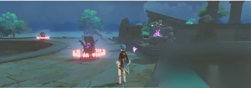 3、上面步骤完成之后,发现雷元素方碑的禁锢会接触,这是候赶紧派出雷系角色快速去点亮。