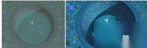 5、玩家可以这时候跳到水池当中,你会看到看到一个裂缝,按照这里努力的游进去。
