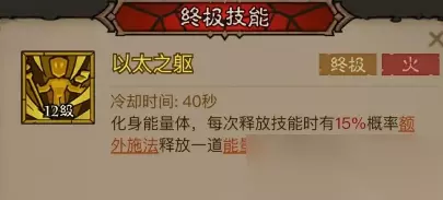 5、终极技能:以太之躯-烈火施加燃烧,增加持续伤害。