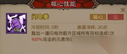2、核心技能:闪电拳-火焰弓。
