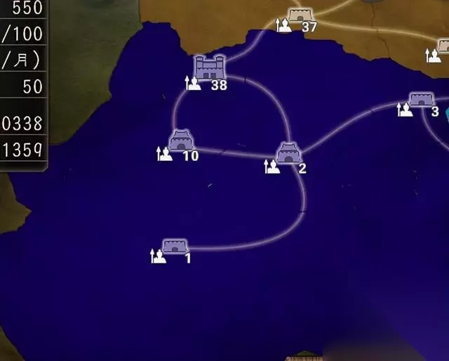 【中原】上图蓝色势力,不算其它颜色 ·商业都市:濮阳、陈留、下邳 ·大都市:洛阳、许昌 ·农业都市:汝南 ·医疗都市:小沛 ·通常:无 按照上述的原则,中原势力建议优先向商业都市的濮阳、陈留或下邳发展商业;然后尽快出击占领大都市的洛阳、许昌进行爆兵;再是要出击汝南这个中原唯一的农业都市来保障兵粮。 如果是玩家势力从寿春出击的话,前期可以先占下邳增加金钱收入,中期则建议先占汝南来捏住其它势力的兵粮要害,控制敌人的兵力。 从这个设计来看,其实挺有利于历史剧本的曹操势力。 比如251的曹操,开局占领周边空城后,建议优先重兵保护陈留和发展商业,随后自己大本营许昌爆兵,再发展汝南的农业。