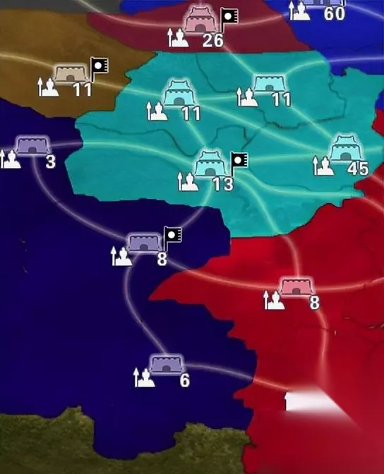 【荆楚】 ·商业都市:宛、新野、江陵 ·大都市:襄阳 ·农业都市:武陵、桂阳 ·医疗都市:江夏、上庸、长沙 ·通常:零陵 荆楚地区比较有意思,因为历史剧本出现过多个势力,而且各种都市类型都齐全,还和刘备演义各时期都有渊源:曹操南下之前,刘备在新野,适合他早期发展;赤壁时,刘备在江夏,曹操和孙权互打,刘备就可以利用江夏医疗都市的特性愉快地吃伤兵;赤壁后,刘备借得江陵,随后诸葛亮就设计拿下襄阳,荆南四郡也是优先出击武陵,完全就是按照商业→大都市→农业来。 【西北】仅3座城。 ·商业都市:天水 ·大都市:长安 ·农业都市:无 ·医疗都市:无 ·通常:西凉 马腾通常开局2座城的话,建议优先天水发展商业,然后西凉爆兵,接着拿下大都市长安,再向农业都市汉中出击。(汉中其实应该属于巴蜀,西北因为缺农业都市,所以借来介绍)