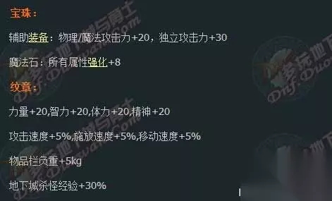 关于纹章,应该是指光环,理由是确实描述的属性上蛮接近。 日服的是属强+10,智力/力量+25,物魔暴击率+2%,3速+2%,物/魔攻击力+15,独立+20,光环移动 DNF2020活动 欲望之塔