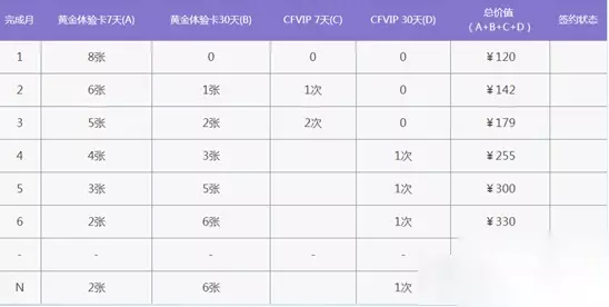 最高奖励:黄金体验卡(7天)*2、黄金体验卡(30天)*6、CFvip(30天)*1 4月专属奖励 4月会员签约完成后可领取