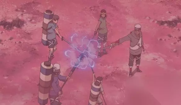 奥摩伊在第四次忍界大战时期,在听到同村的伙伴遭遇危险时,独自一人前去营救,将所有人拯救出来后,几人将武器集中至一点,同时灌入雷遁查克拉,对极大范围造成电击,消灭了大量白绝。