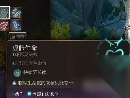虚假生命 可以理解为套个能档7点伤害的盾,但这七点伤害是固定数值不会增加的7点伤害也只有在非常前期的情况下才有那么点意义,但凡稍微推进一点进度的话都会变成纯浪费法术位的垃圾。