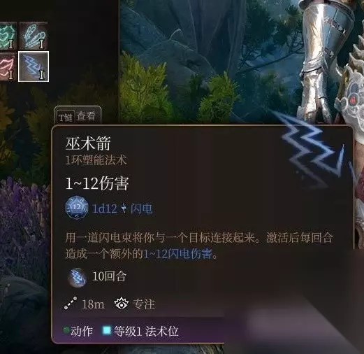 巫术箭 很实用的一个单体法术,1d12的伤害还附带每个回合不消耗法术位释放的后续效果,省法术位来打单体输出是是极度好用的,非常推荐学习。