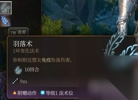 羽落术 战斗基本用不到,但本身是仪式法术不用消耗法术位就很好,但也没必要去刻意学习这个浪费钱,第一章幽暗地域的法师塔二楼有个鞋子自带羽落术。