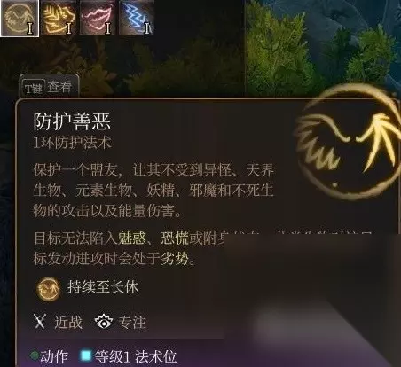 防护善恶 要专注还非常不实用,主要还是因为游戏中除了在第二章大量出现了不死生物以外其他几种生物的登场都极少而且登场时也基本用不到这个聊胜于无的一环法术了,最实用的时候也就是打打鬼婆了。