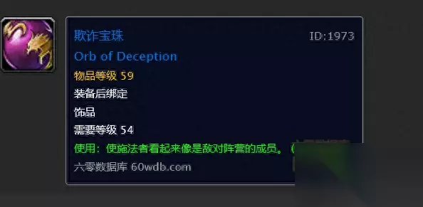 使用:将你变成一只熊怪持续3分钟(冷却1分钟) 获取方法:联盟在灰谷的一个任务,18级就能接:莱恩的净化,在阿斯特兰纳找NPC莱恩·狼行者接任务。这是一个挺长的系列任务,我们只需要做到拿到[达图尔的变形魔棒]就可以不用继续做下去了,也就是说这个道具并不是任务的最终奖励,而是一个任务道具。该任务是个跑路任务,各种跑路,好在都在灰谷这张地图。在下图中的坐标位置接任务。 简介:非常拉风,冷却很短可以一直用,最最关键的是没有区域限制,联盟玩家收藏控必备 4.欺诈宝珠