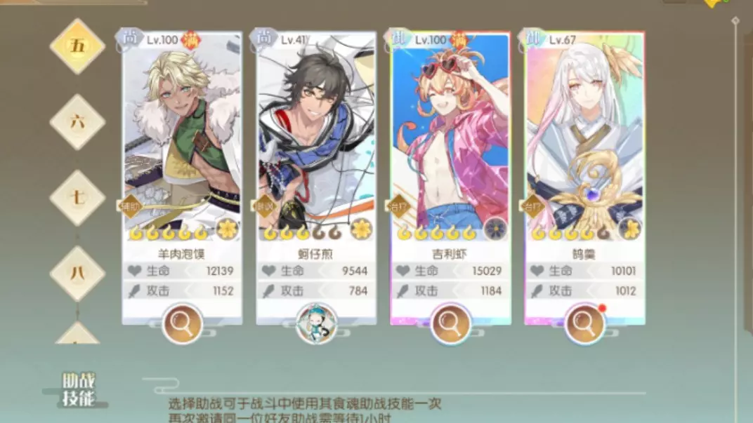 玩家分享《食物语》离虹阁九的四角色挂机通关阵容,包含素蒸音声部、万寿羹等食魂,还调侃自己抽卡依旧保底,虽删游四年回归操作生疏,但该阵容可应对离虹阁九关卡。