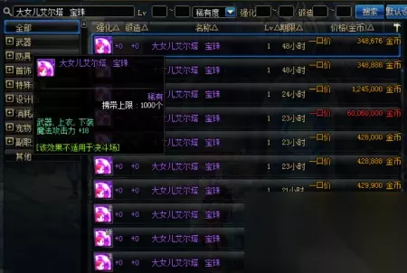 大女儿艾尔塔宝珠,这宝珠属性同样是18魔攻,相对而言,这宝珠比较的便宜,但是性价比没有巨锤小丑高。