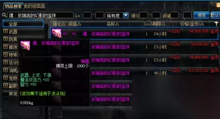 魂狄瑞吉宝珠,这宝珠比较昂贵,因为属性比较强,不20的魔攻,甚至还有50的智力,这在拍卖行达到5600万金币,这恐怕并不是一般人能买的起。