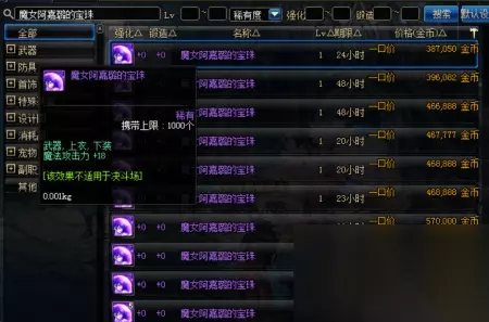 魔女阿嘉璐宝珠,这宝珠加成18的魔法攻击力,比卡特罗宝珠少2点魔攻,但是价格却相差万里,魔女阿嘉璐宝珠在拍卖行高达38万金币。