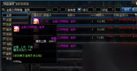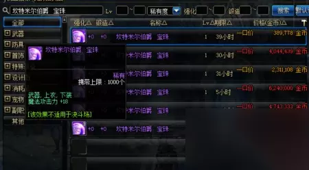全能之玛特伽宝珠,这宝珠还是比较不错的,45的魔攻加成,这对于魔法百分比职业提升比较大,不过在拍卖行比较贵,4800万金币才能买到。