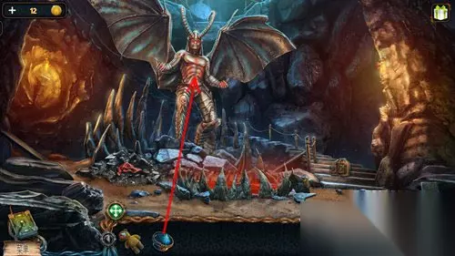 点击蓝色粉末,再点击恶魔雕像。