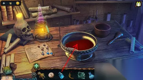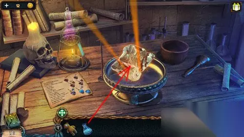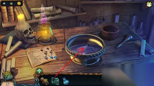 最后点击道具栏中的烧杯,再点击透过镜片射进来的月光。