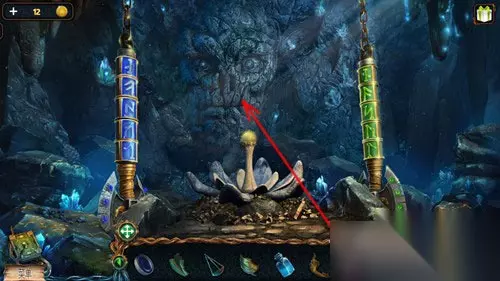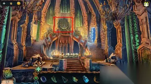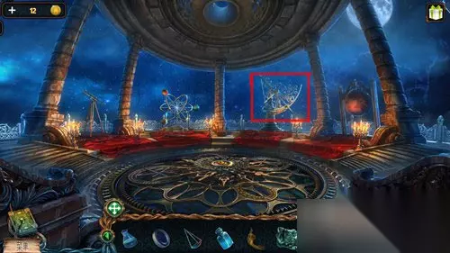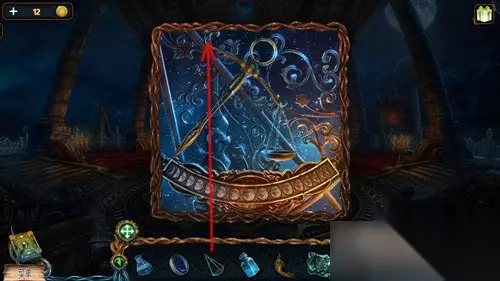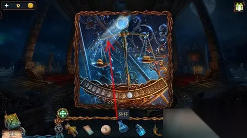 这样天平指针就能看到一个亮着的月亮,然后点击道具栏中的镜片,再点击天平上面的圆孔,将镜片放进去。