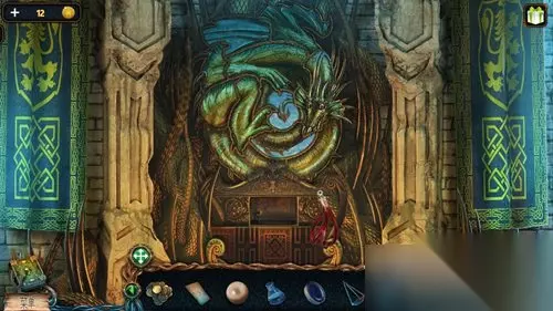点击道具栏中所有获得的龙纹碎片,拼在墙上。