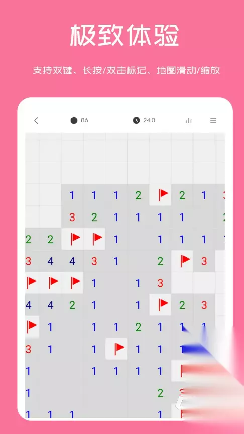 单机版地雷战手游,本质上是经典扫雷玩法的移动化呈现,兼具策略性与趣味性。玩家需依据格子提示信息,逐步识别并标记地图中所有隐藏地雷。每关的地雷总数、分布密度及排列逻辑均不相同,要求玩家结合逻辑推理与空间判断能力,在不触雷的前提下完成全图排查,成功清除全部地雷即为通关;若误点地雷,则游戏立即终止。 1、《地雷》