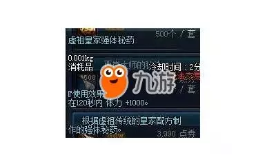各位亲爱的的勇士们: 【虚祖皇家强体秘药】已停止出售,为保证游戏平衡性,已限制在安徒恩Raid中无法使用。