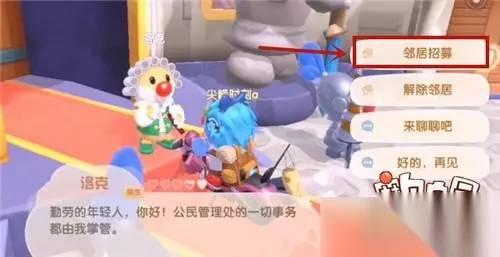 2、和洛克兑换然后点击【邻居招募】功能按钮。