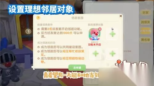 4、成为邻居的条件是双方都开启了邻居功能,并且亲密度已经够了。