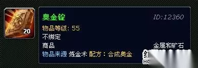 魔兽世界奥金锭怎么做? 1、制作方法:奥金锭 = 奥术水晶(1) + 瑟银锭(1)。 2、配方:合成奥金在百加基森的炼金术供应商——炼金师匹斯特苏格处有售,需要炼金术(275)点化需要工具点金石,而这个 NPC 同样出售配方:点金石点金石 = 铁锭(4) + 黑色硫酸盐(1) + 紫莲花(4) + 火焰花(4)。 在以前风剑任务需要100块奥金锭,而点金石这个工具的冷却时间是2 天(48 小时),在这段时间内任何点化(比如点化奥金、真银)都不能进行。答任何工具/媒介的冷却时间都是属于人物的,所以换一个点金石并不能取消冷却时间。这就导致奥金锭的冷却时间为两天,所以导致奥金锭在拍卖行的价格十分昂贵。