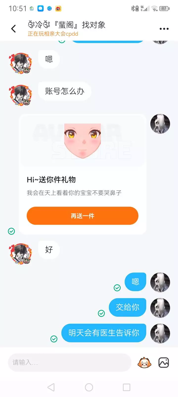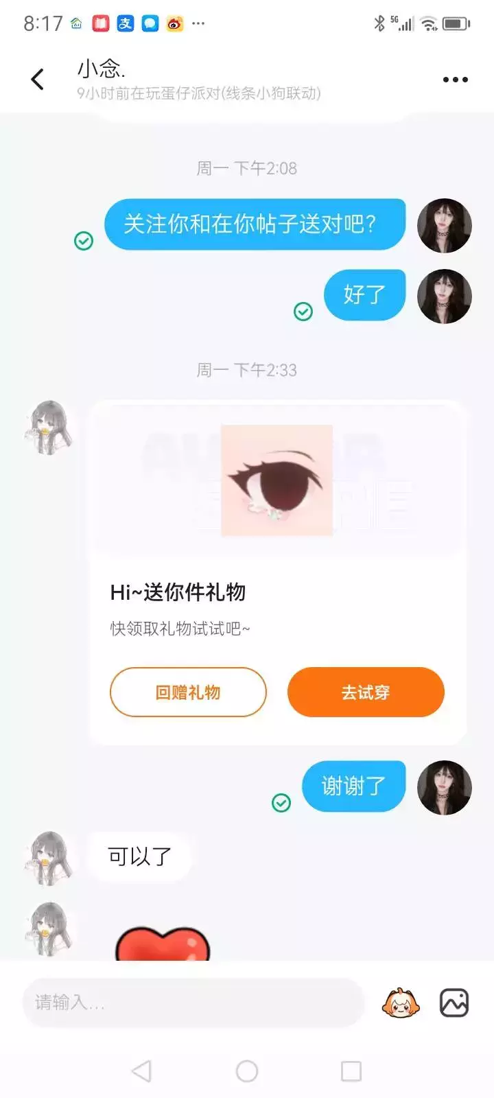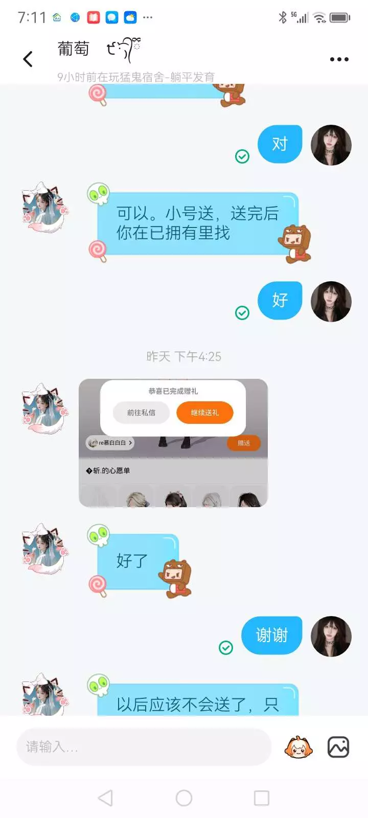送了闺闺一个也可以送你们前提是要是我粉丝哟