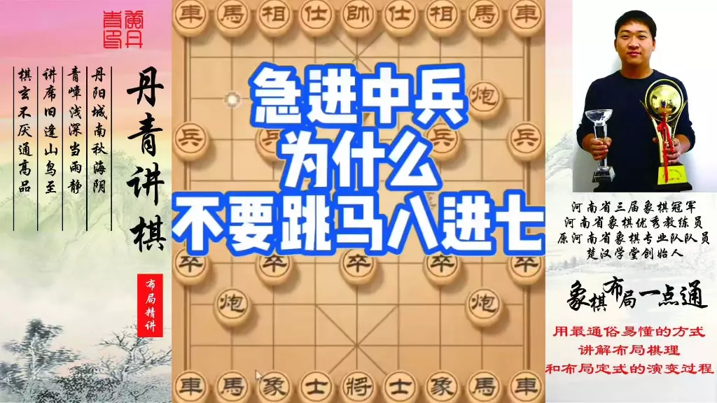 急进中兵为什么不要跳马八进七!如何快速提升象棋水平?如何学习象棋布局、中局、残局?河南省象棋冠军黄丹青全套象棋课程!真心教棋,少走弯路,带你上业九,不上业九不罢…