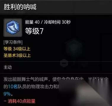 技能十四:胜利的呐喊 团队加伤害技能PVE加到7点就行了。保证团队10人能吃到此技能。