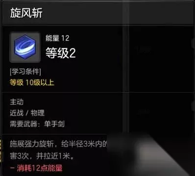技能四:旋风斩 骑士拉怪神技,消耗较少的能量,将周围的怪物拉向自己,让队友方便清理小怪,关键还能跳着放。(PVP的时候玩家不能拉)
