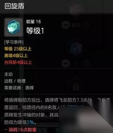 技能十:回旋盾 远程技能,可以给目标减防。可选择性点一点或者不点,因为技能点不够,不忧先加。