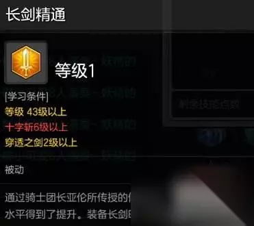 技能八:长剑精通 被动技能。PVE不点此技能,一方面点数不够不优先点。另一方面获得的攻击力收益不大。PVP可选择性点。