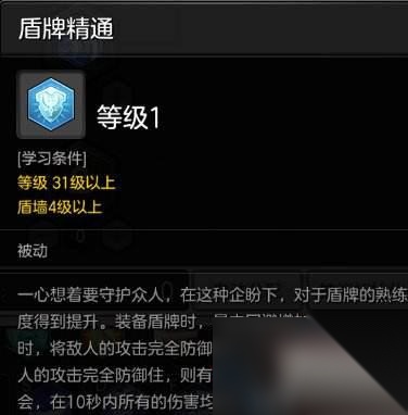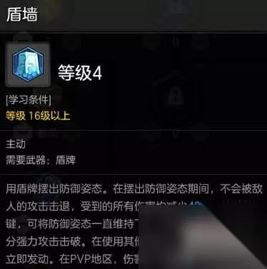 技能十一:盾墙 骑士自身减伤神技能,因为点数不够所以这里就点4点。