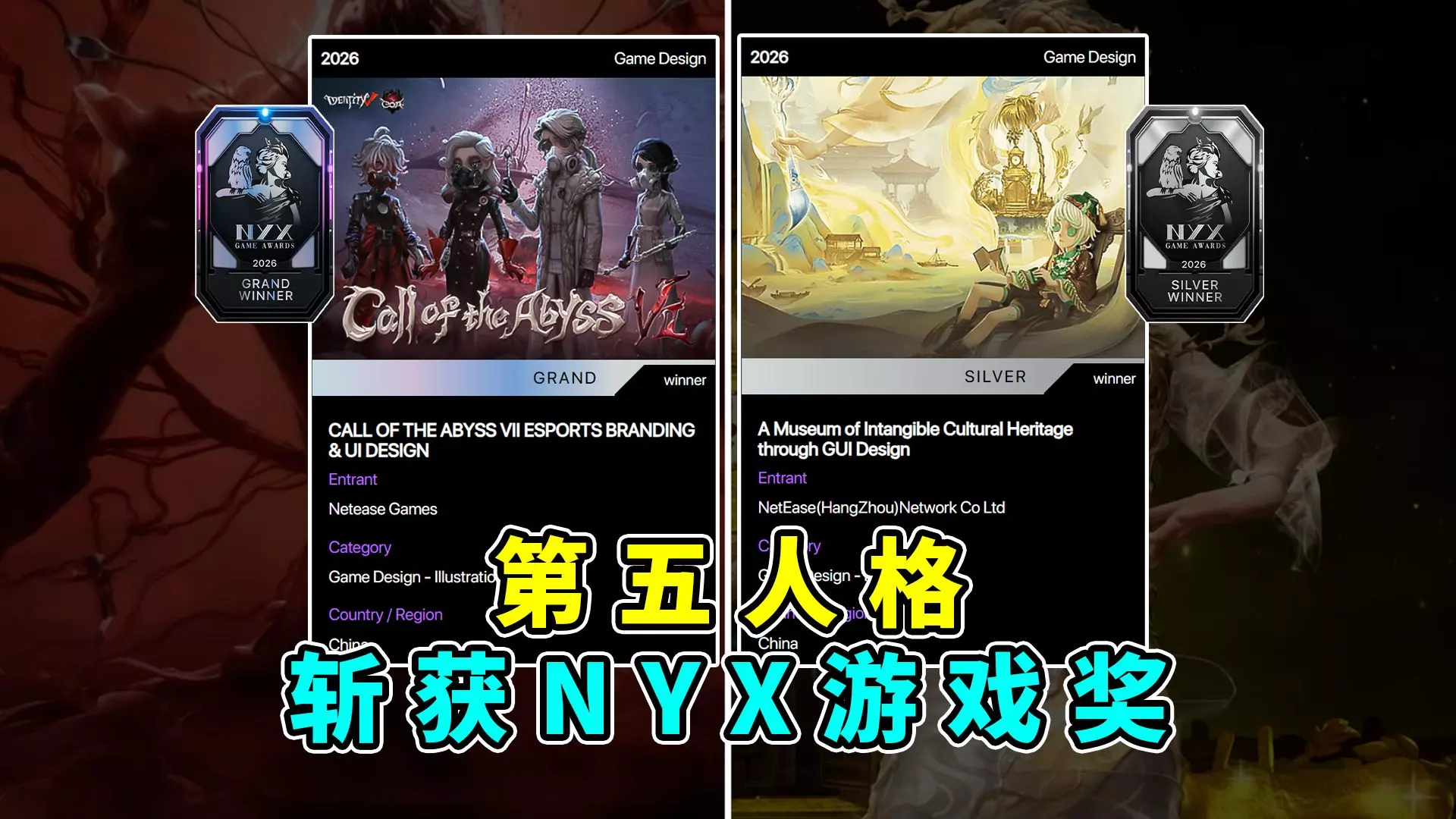 重大喜讯!第五人格斩获NYX Game Awards两项大奖!