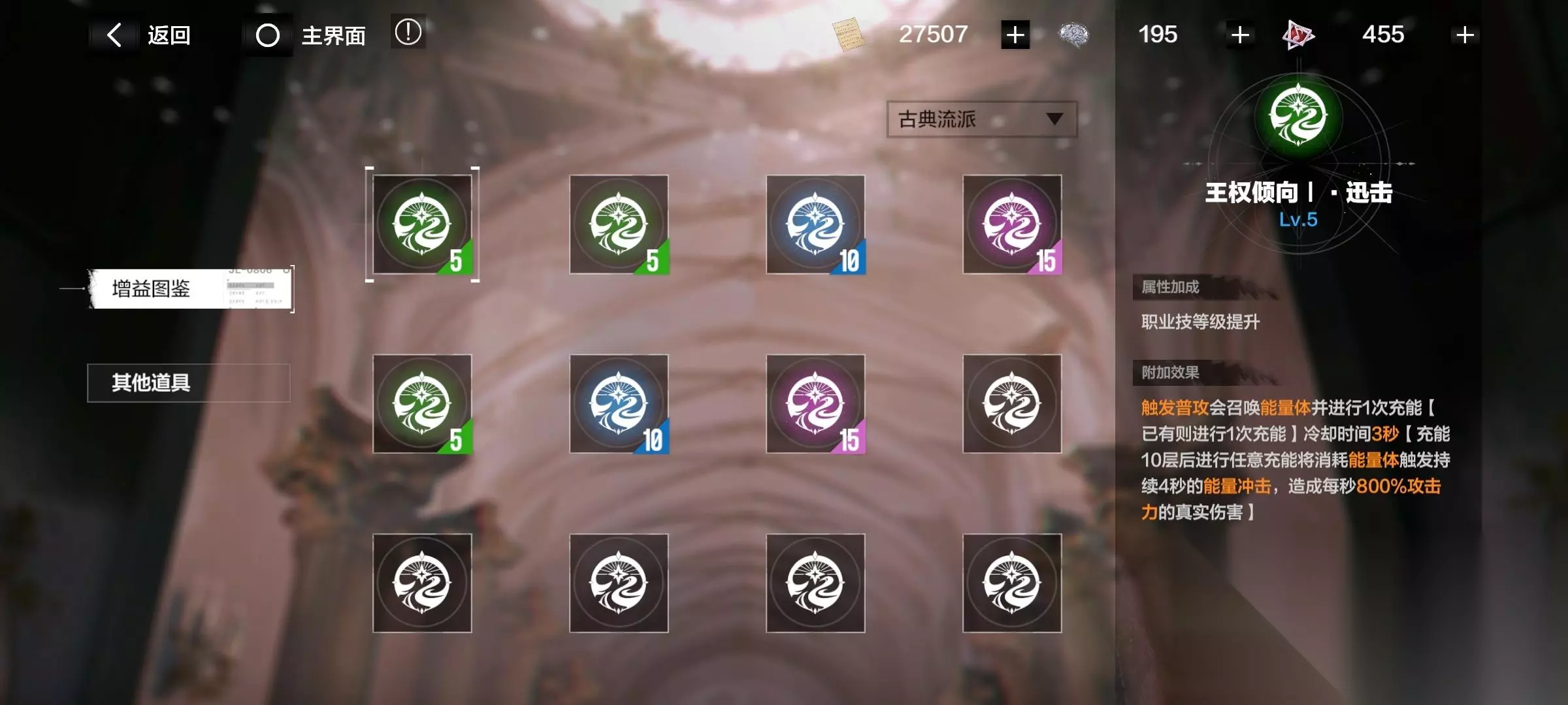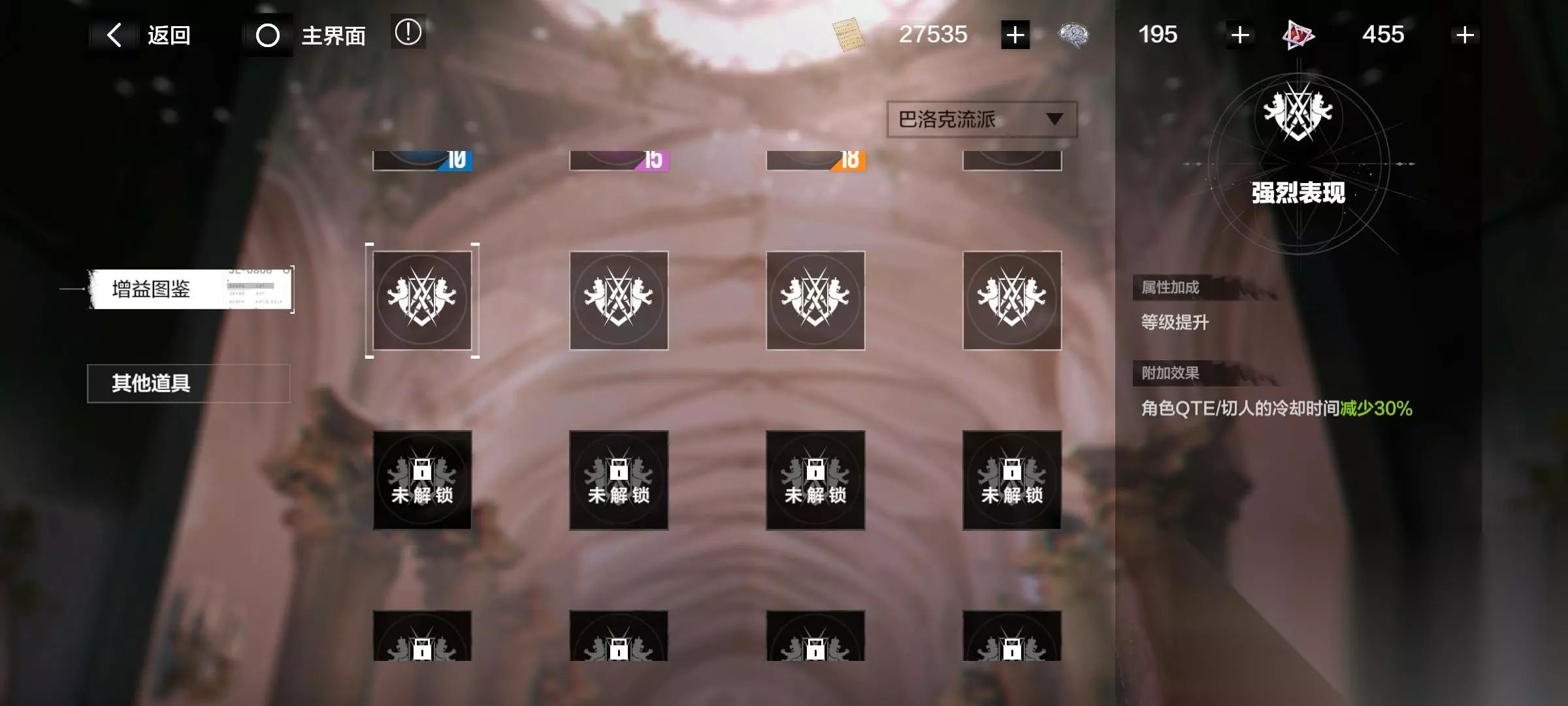 4、超算buff(进入超算空间后触发buff,升级核心被动等级) 我会选巴洛克流派>古典流派,因为增益不错