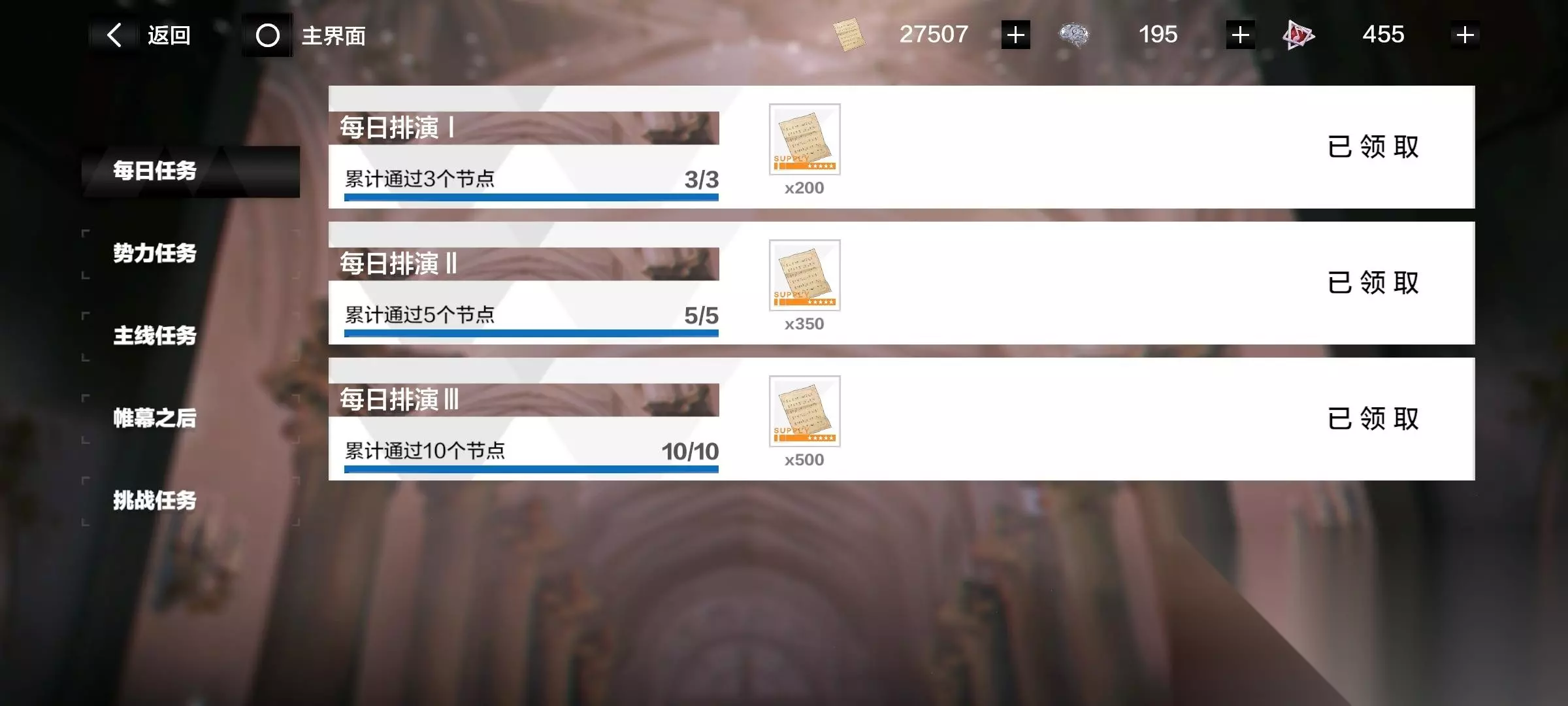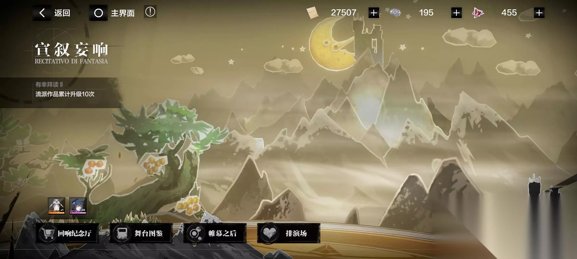 2、排演场(也有升级奖励)