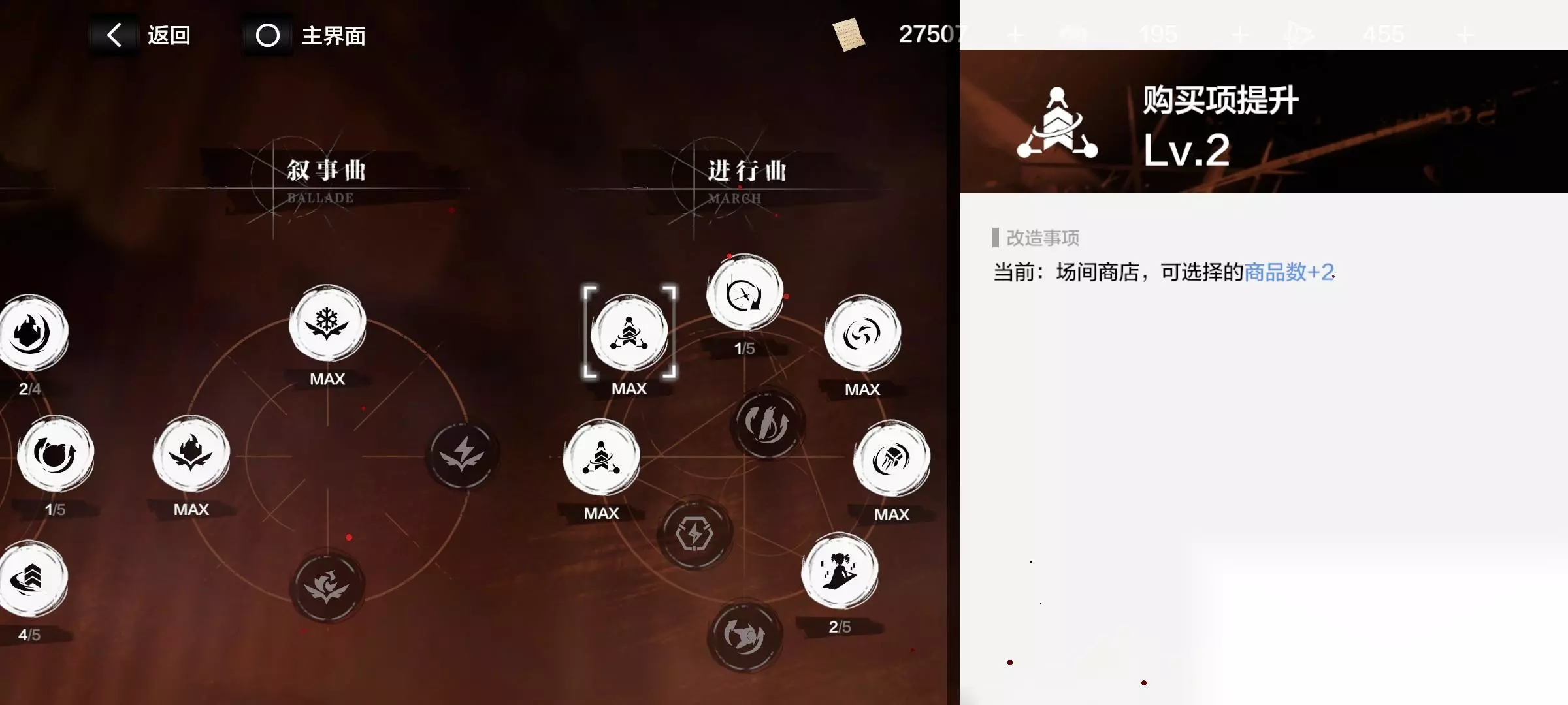 升级OK 替换不行 打到指定节点有商店,商店里有辞本,材料,流派(在帷幕之后可增加商店栏位)